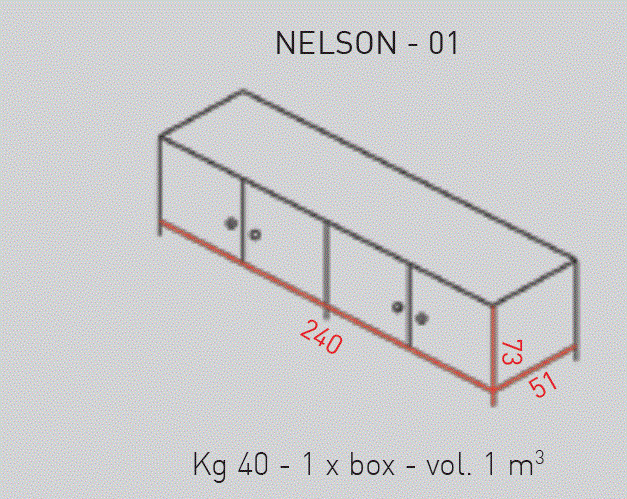 Kovová konstrukce skříně rodiny Nelson je z tepaného a galvanizovaného bronzu. Čistota jejich nohou a kliky a přísnost jejich tvarů je činí střízlivými a klasickými. Dveře každého kusu jsou přizpůsobitelné 40 barvami originálních usní Airnova.