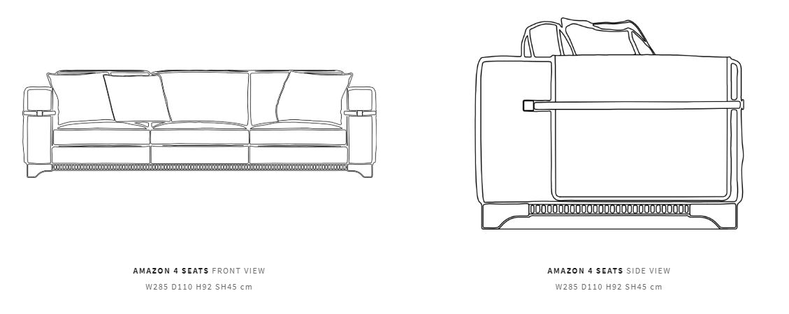 Rám z masivního dřeva; dřevěná základna. Kožená opěrka sedadel s mosaznou přezkou. Sedáky a opěradla z přírodního peří s polyuretanovou vložkou. Mechanismus postele není k dispozici.
