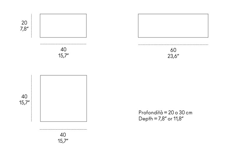 Lehkost a síla, linearita vnímání a nespravedlnost detailů, Alma-a-Muro tyto rozpory uspokojuje díky různým výškám, hloubkám a velikostem modulů. Tři moduly (malé, střední a velké), které lze zavěsit a složit podle vašich představ.