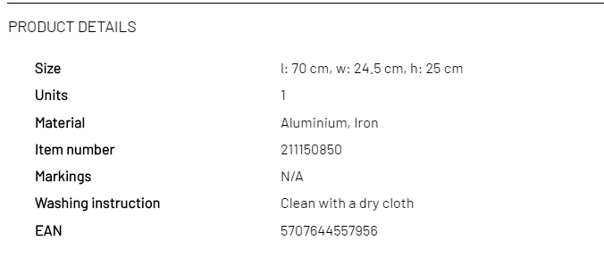 Tato elegantní police od House Doctor se perfektně hodí do každého domova bez ohledu na styl. Police se jmenuje Lemmy a má jednoduchý a elegantní vzhled. Použijte polici jako úložné řešení nebo jako ukázku vašich osobních knick-knacks. Police má černou barvu s minimalistickými držáky ze železa. Použijte jemnou polici pro skladování v kuchyni, jako noční stolek v ložnici nebo pro vystavení vašich knickových talentů a dědictví v obývacím pokoji. Jediným limitem je vaše fantazie!