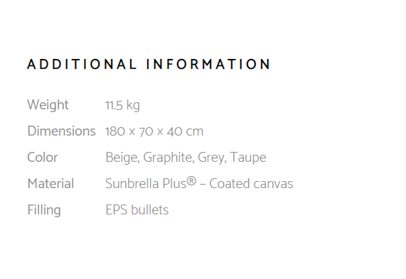 Rocket Daybed je daybed s jednoduchým skandinávským výrazem. Můžete jej použít jako samostatnou položku, na kterou můžete ležet nebo sedět. Nebo ji použijte proti zdi spolu s polštáři a promění se v pohovku. Můžete ji nechat celý rok, protože je odpuzující vodu i skvrny a na slunci nezmizí.