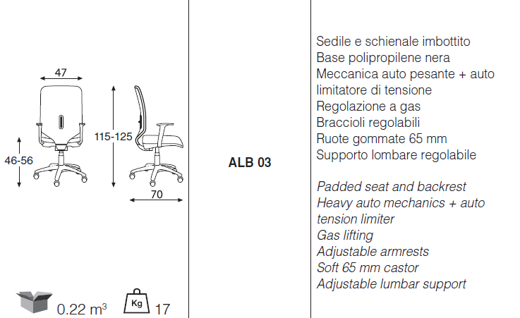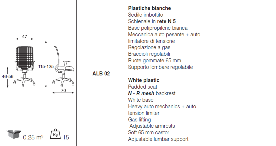 A simple shape combined with self-loading mechanisms, making the chair usable to it user. Alabama offers all-day comfort. The shape of it seat and the padded backrest or network also support the natural curve of the spine, reducing stress on the back.