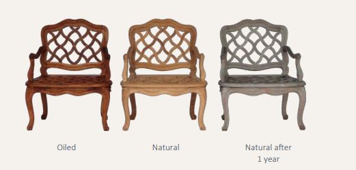 Outdoor chair in classic style. Thanks to Astello, classic furniture can now work anywhere. This collection lovingly explores Regency, Louis XV, Louis XVI and Romantic styles, taking the elegant and exclusive atmosphere of period furniture onto the terrace, alleys, garden and veranda, even to the poolside. We offer a full and matching range that means you can put together a unique ensemble to suit you, whatever your needs and living space. All our furniture is made using traditional techniques by gifted artists which gives them a warm and unique character. We only use high-quality teak from plantations, sourced from Indonesia. All our furniture are traditionally assembled using mortise and tenon joints fixed with high-quality marine adhesive. Each piece can be left outside all year round as they are made of imperishable teak. Left to itself, teak will over time develop an elegant grey patina while if it is treated with oil it will retain its original golden-brown sheen.