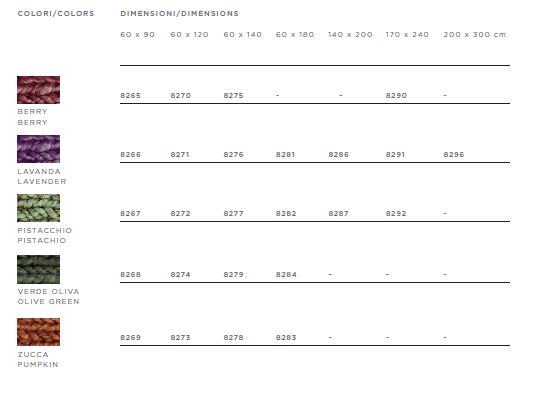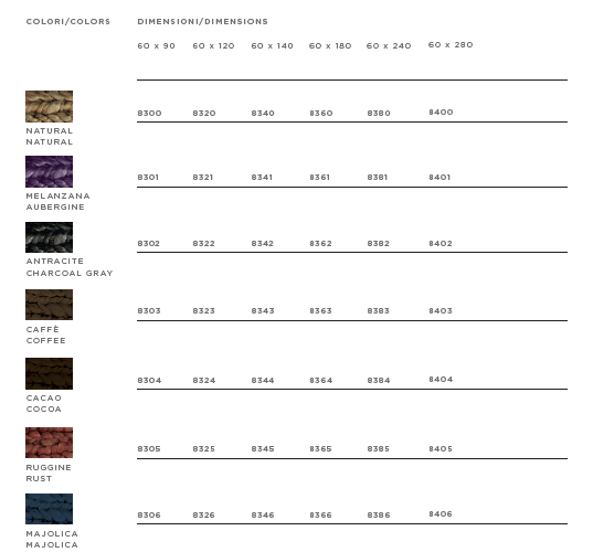 The product, completely made in Italy, is available in different sizes and colors, ranging from the most natural to the most bright and modern colors.