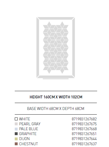 The Facet freestanding room divider is perfect for dividing the space in rooms. It does this stylishly through capturing and reflecting light. The individual geometric diamond shapes can rotate independently, creating beautiful patterns of light and shade. You have absolute freedom to arrange amazing patterns, pivot the diamonds to catch the light or flip them to create more transparency! It is a wonderful designer piece that does not only look stunning in its own right, it divides spaces elegantly. The Facet freestanding room divider is ideal for your home, commercial/public spaces, hotels, restaurants, offices, showrooms, retail stores or reception areas.
