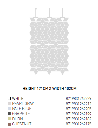 The Facet suspended room divider is perfect for dividing the space in rooms. It does this stylishly through capturing and reflecting light. The individual geometric diamond shapes can rotate independently, creating beautiful patterns of light and shade. You have absolute freedom to arrange amazing patterns, pivot the diamonds to catch the light or flip them to create more transparency! Facet is beautiful and practical.