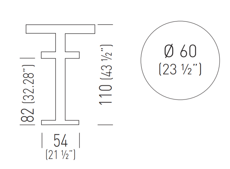 H110 double table with technopolymer tops, round DPBT54 metaltechnopolymer co-injected base, Ø 80mm anodized aluminum column.