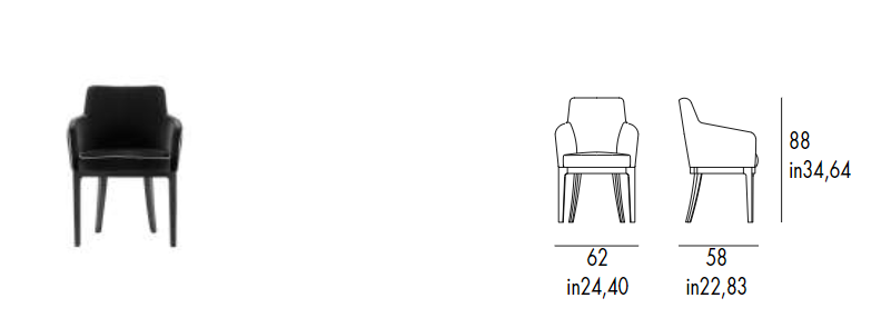 Head chair with legs in solid wood, upholstery in multi-density polyurethane foam and fibre cover