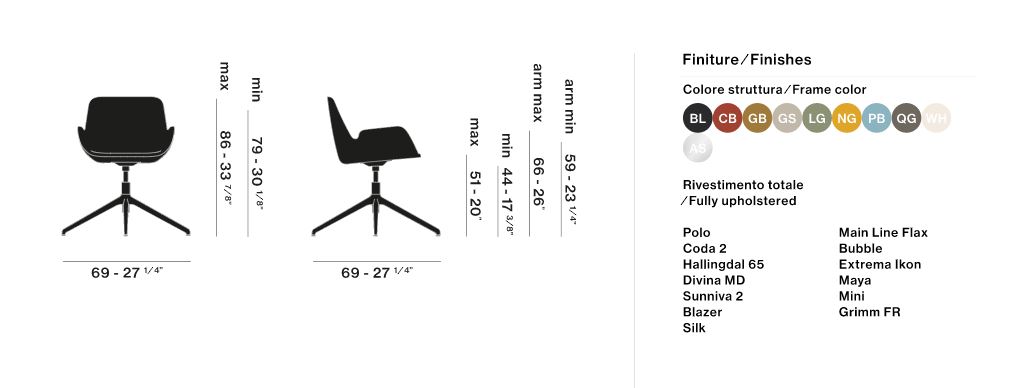 Armchair with polyurethane shell upholstered in fabric. 4-star aluminium base “Office”, powder coated or polished.