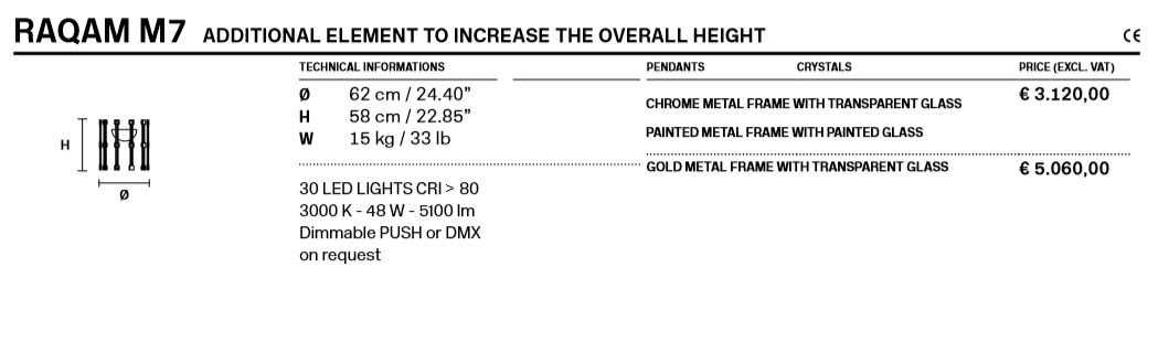 The company's product range revolves around the "Maria Teresa" chandeliers typical of Venetian tradition. But the glass arms in all their shapes and colours, and especially those of the outdoor DRYLIGHT collection, and of Marc Sadler's new, modular RAQAM project, are constantly evolving in terms of technology and engineering. MASIERO's innovative technology is protected by international patents covering the latest developments in home automation and light sources and their exploitation in innovative new lighting products. MASIERO innovations combine decorative and technical characteristics just like architectural lighting. And they serve the indoor and outdoor markets. In 2014, Enrico Maria Masiero dedicated a specific division of the company to outdoor lighting projects based on the latest developments.