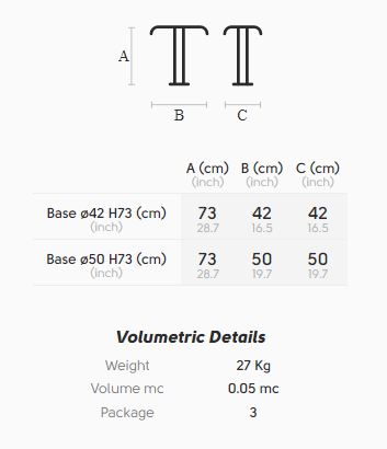 Smart bistro table with square base in lacquered steel. Top available in melamine, HPL or glass, round or square. This table with HPL top is suitable for external use. Table available in two different heights: h73cm (28.7") e h107cm (42.1"). Dimensioni top: Smart 2 base ø42 h73: ø60, ø70, 60x60, 70x70. Smart 2 base ø50 h73: ø70, ø80, ø90 60x60, 70x70