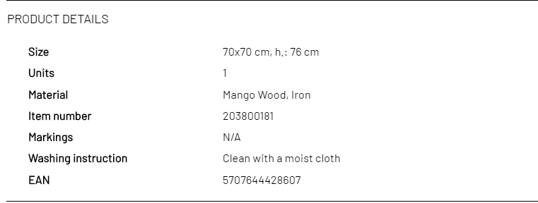Slated is a beautiful dining table for two from House Doctor. The table has a stunning, rustic tabletop made from mango wood, which adds a personal and warm atmosphere. The raw metal legs create an industrial twist. It is ideal as a dining table in a small kitchen or as a café table. Because the tabletop is made of mango wood, it can be slightly uneven. This is part of the design and gives the table a rugged and rustic appeal.