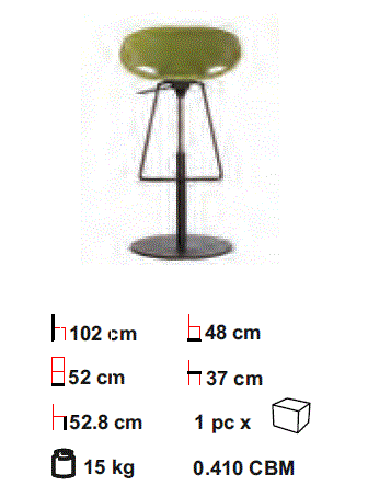 Barstool with a flexible padded seat suspended on black lacquered steel base. Height adjustable with a swivel mechanism and foot rest.
