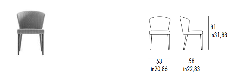 Sedia con gambe in massello di noce canaletto, imbottitura in poliuretano espanso stampato a freddo