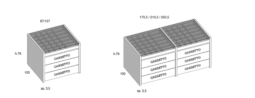 Cassettiera autoportante bifacciale disponibile in diverse dimensioni e finiture.