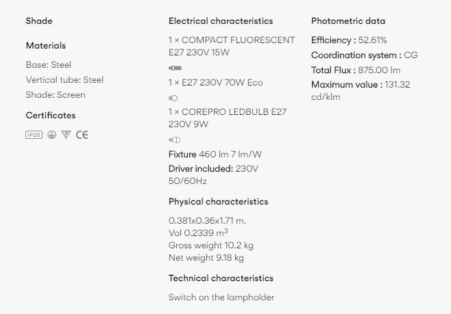 Напольные светильники Swing, разработанные Lievore, Altherr, Molina, привносят ощущение элегантности и красоты, где бы они ни использовались, которые помогают создавать тепло и создают приятные пространства для проведения времени. Vibia выпускает две версии торшера Swing, один с плашкой, оснащенной переключателем в качестве части держателя лампы, для другого комфорта, а другой с металлическим плафоном со встроенным выключателем в качестве части кабеля, идеально подходящий для лампа для чтения при установке рядом с диваном или креслом. Пользователь может выбирать между тремя различными вариантами отделки; хром, графитово-серый и матовый лакированный белый.